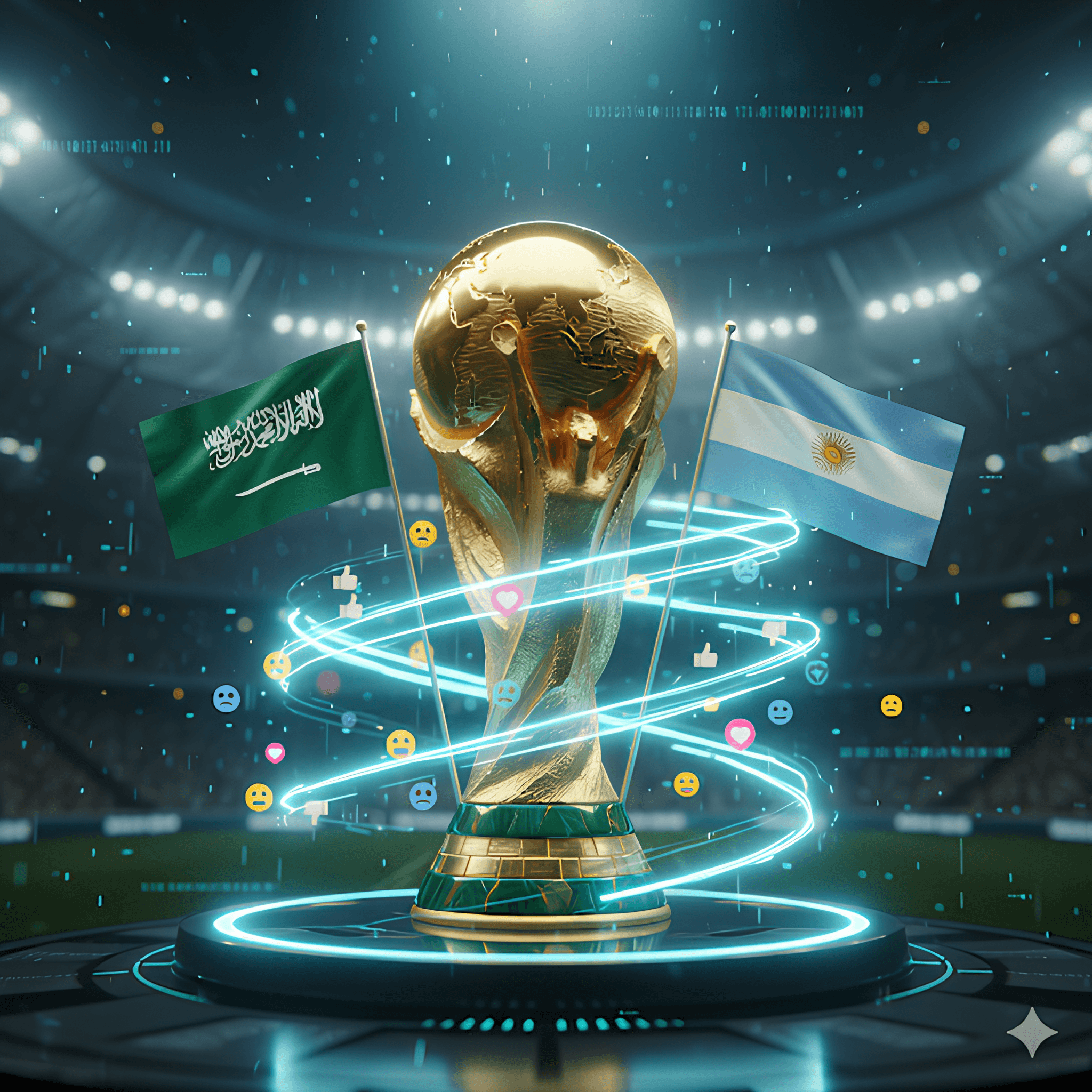 A fun project that tracks how happy Saudi fans were after each goal, turning their reactions into numbers and comparing the mood across different matches throughout the tournament.